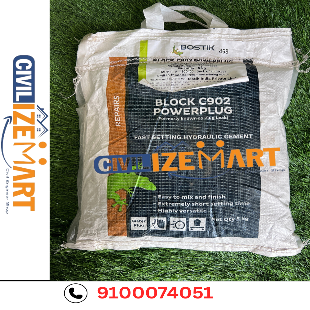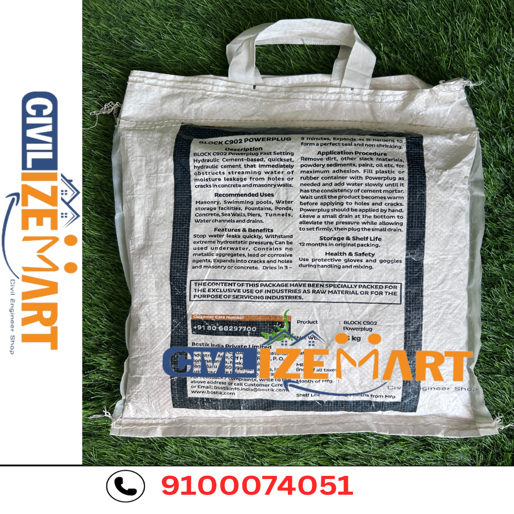 91 000 74051 Bostik Block C902 Powerplug (formerly Plug Leak) is a fast-setting, non-shrink hydraulic cement-based powder designed to instantly stop active water leaks in concrete and masonry. Its expansive, quick-curing formula works even underwater and under high hydrostatic pressure to deliver a durable seal.