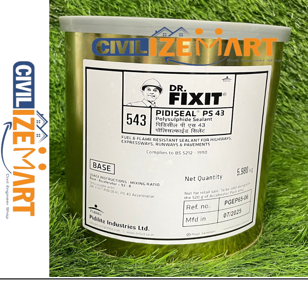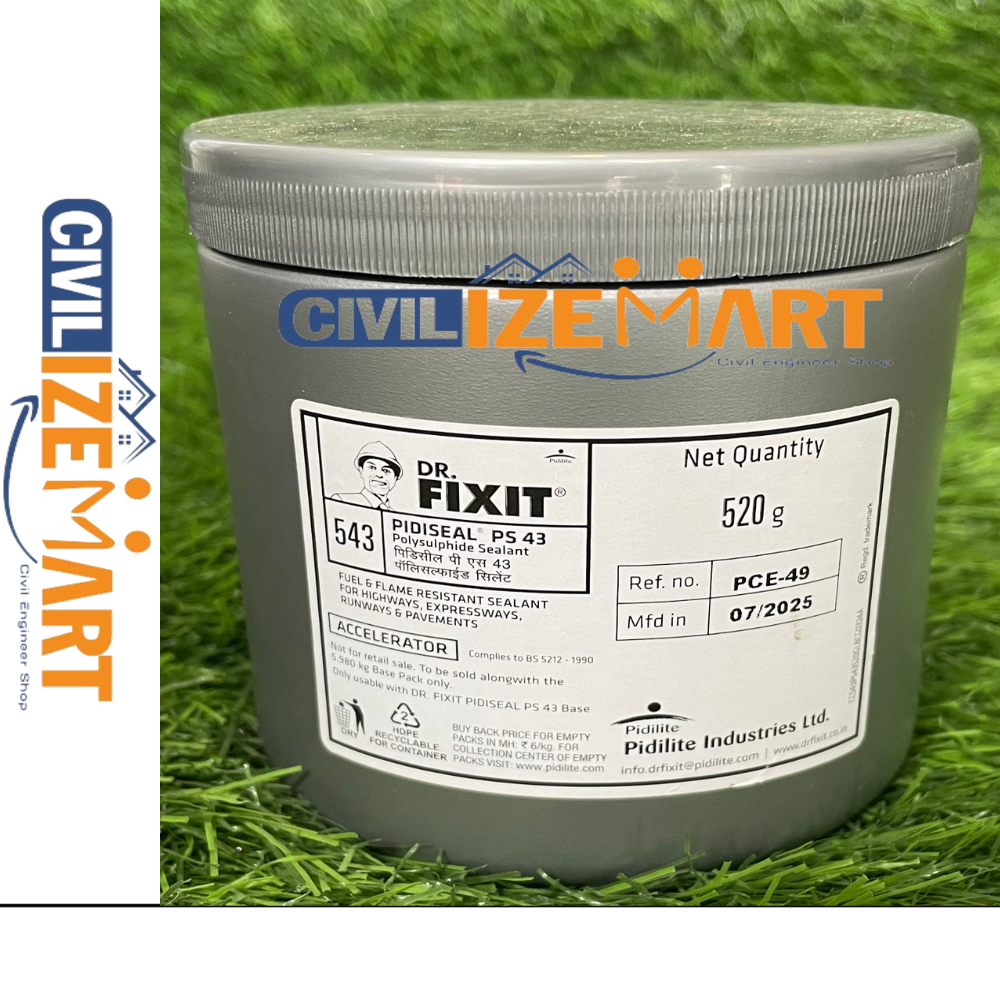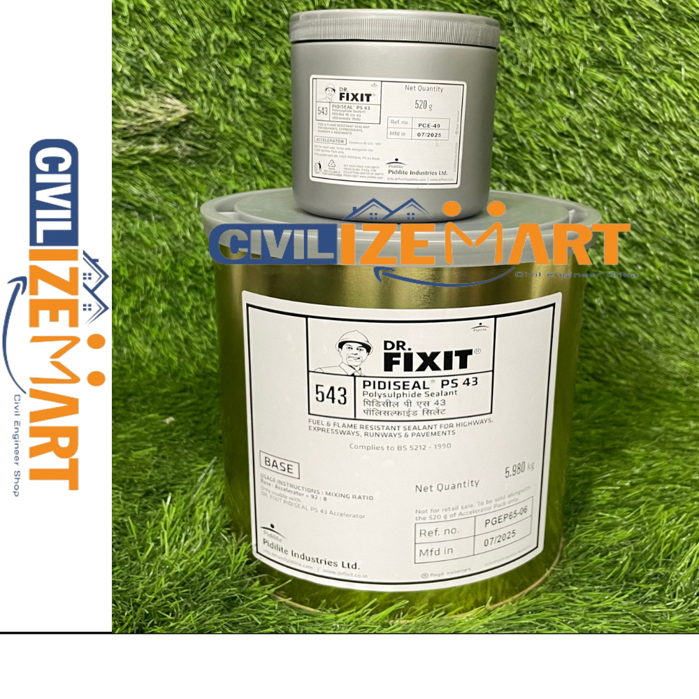 91 000 74051 Dr. Fixit Pidiseal PS43, Grey is a two-part elastomeric sealant based on a liquid polysulphide polymer which when mixed with accelerator (curing agent) cures by chemical reaction to form a tough, flexible rubber seal. This sealant has excellent fuel resistance, adhesion to different substrates like masonry, concrete with excellent movement accommodation. It is far more superior to conventional joint sealant materials such as bitumen, mastics and expansion-sheets.